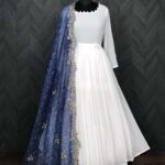 Elevate your wardrobe with this exquisite designer gown set, thoughtfully crafted for style and comfort. The gown is made from premium georgette fabric with delicate thousand butti embroidery, offering a sophisticated texture and lightweight feel. Its full-length design with a flattering round neck, full sleeves, and soft cotton lining ensures elegance and comfort from top to bottom.