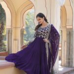 Elevate your festive look with this Faux Blooming gown featuring viscose dyable jacquard fabric and sparkling sequins embroidery. Paired with a matching dupatta with sequins cutwork, this 12-meter fully flared gown offers elegance, comfort, and a perfect fusion of western and Indian style.